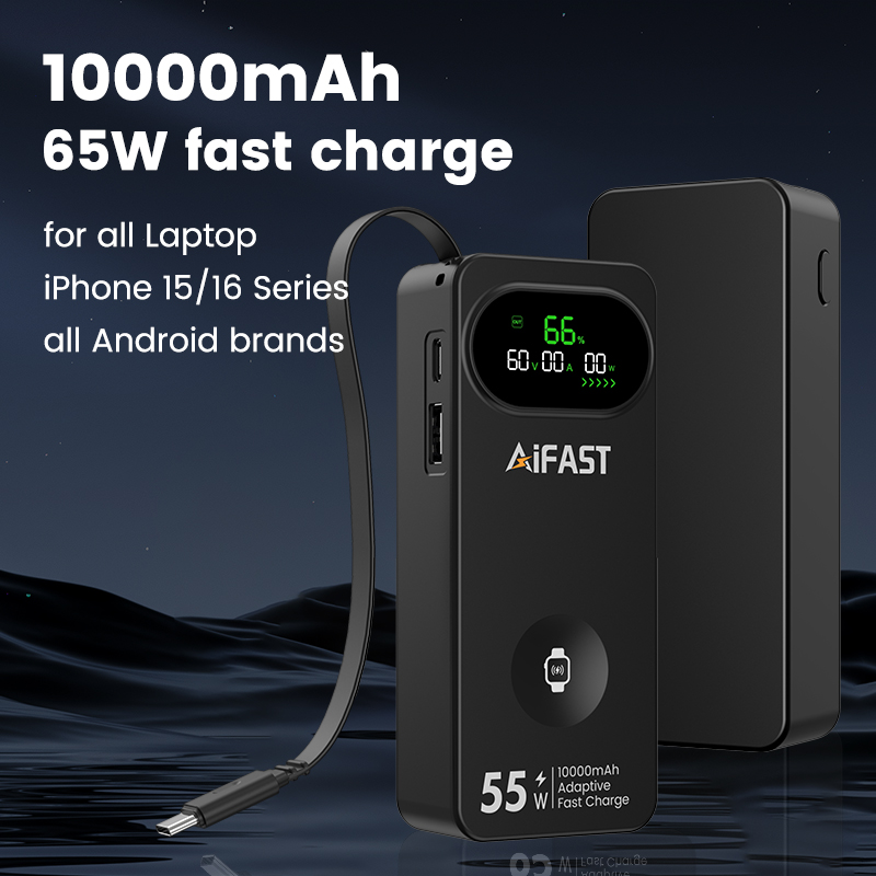 ESC-X018 65W Ultra-Fast 10000mAh Power Bank with TFT Display & Retractable Cable